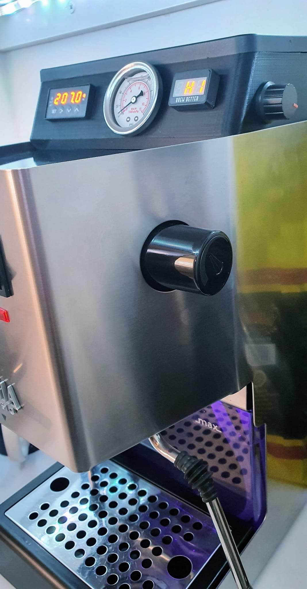 The electronics and gauge are wrapped in a streamlined enclosure that perfectly fits the GAGGIA Classic. The tilted design provides clear view angle of the instruments. Durability and heat resistance are guaranteed by the 3D printed ABS material. Ventilation holes, a silent fan and dedicated heatsink for the SSR maintains optimal operating temperature. I have designed the BoostBox so that it can be flipped and fixed in place while the machine is serviced; routine maintenance and servicing can be easily performed without the need to disconnect any components!