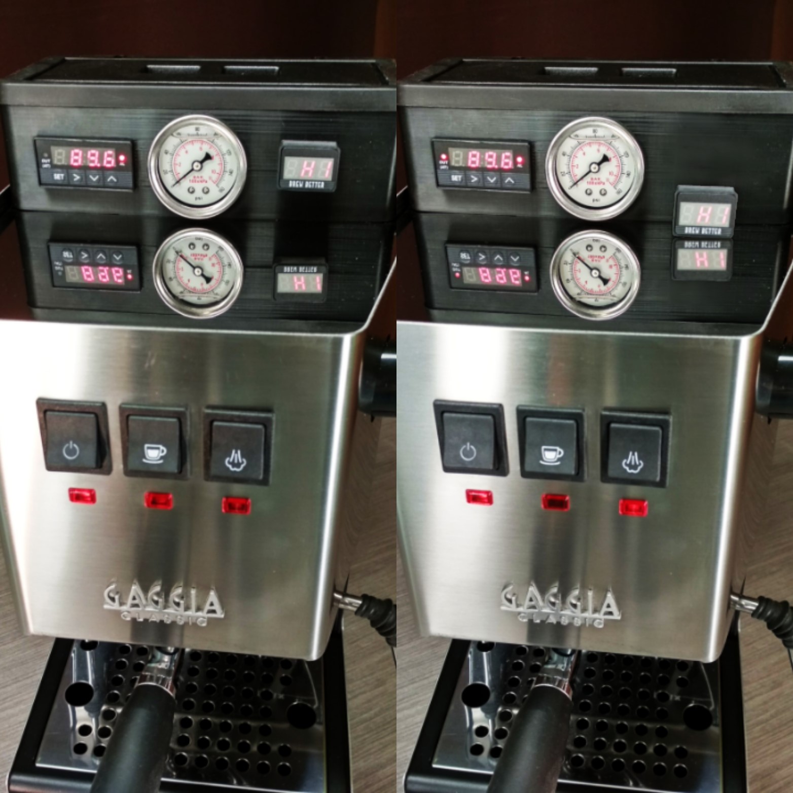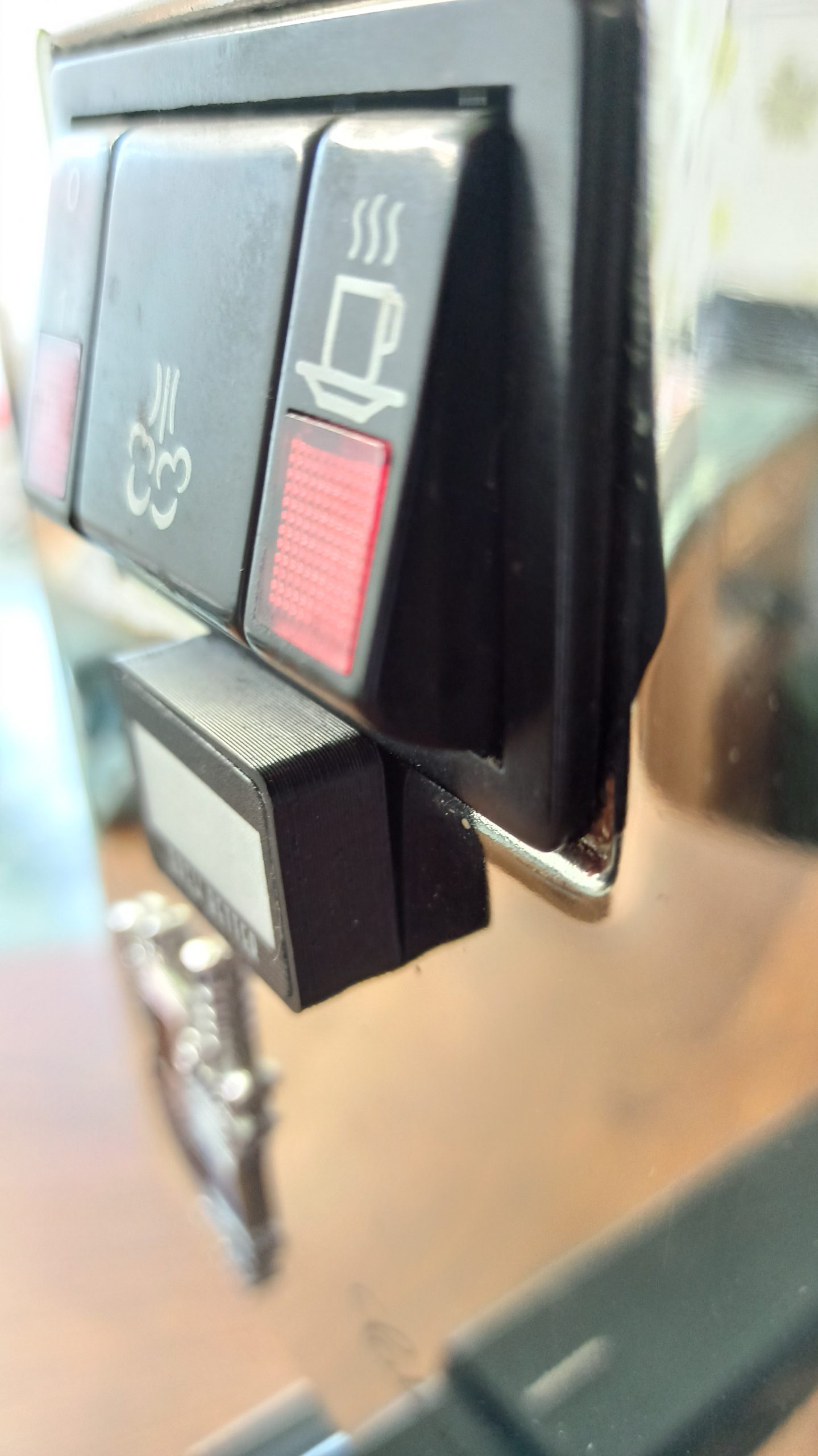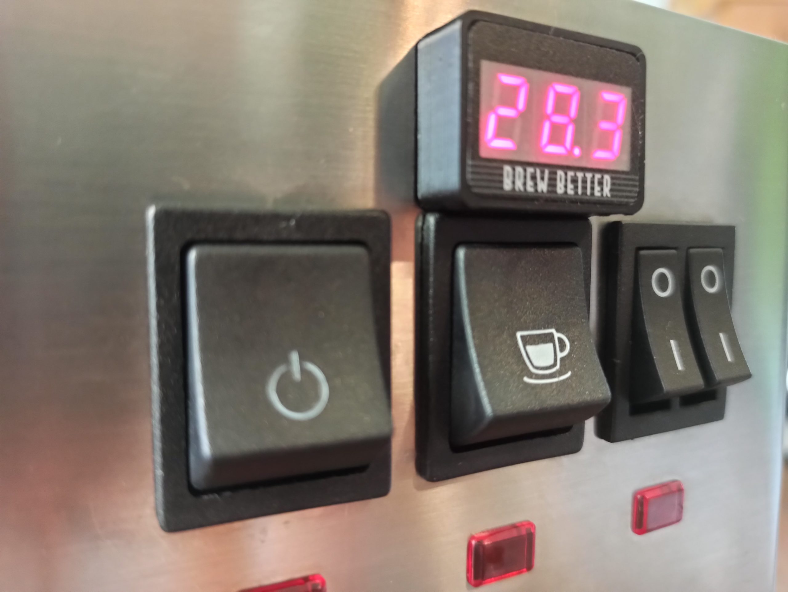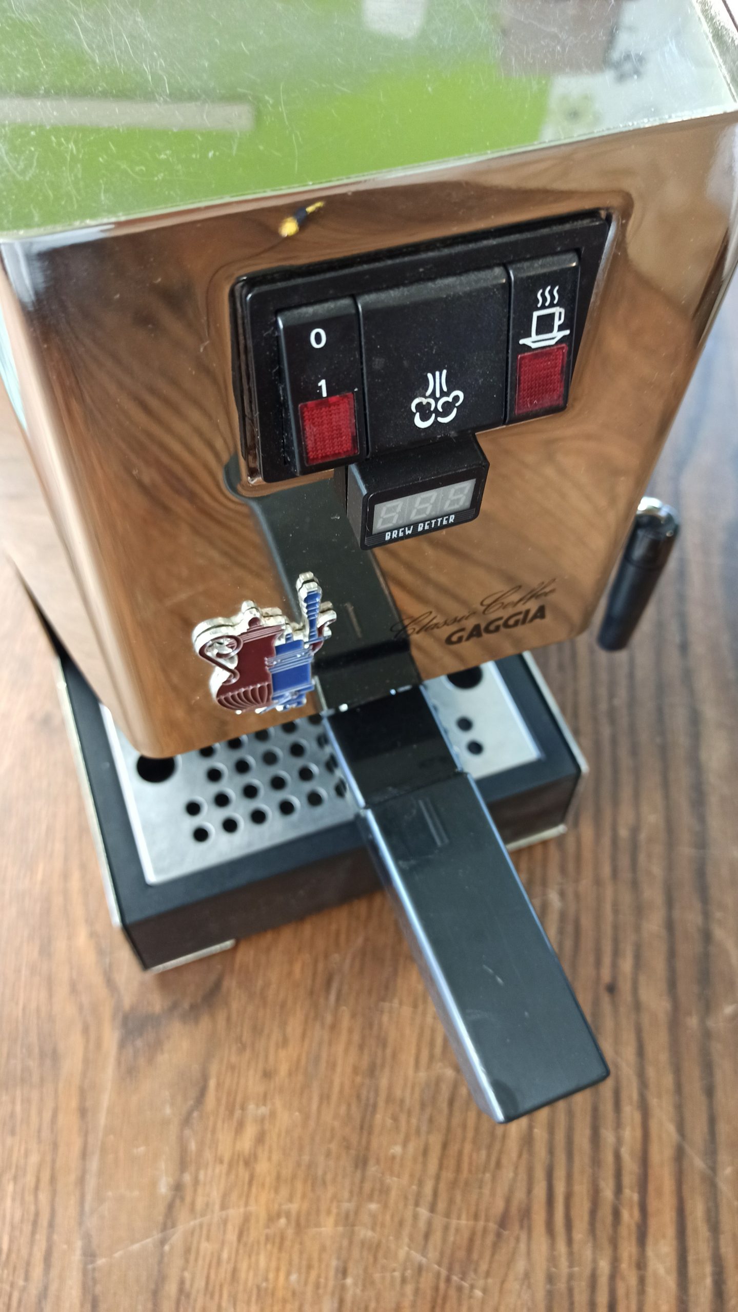 My timer consists of a circuit board (40*60mm) in a 3D printed box, secured to the top assembly of the Classic from the inside. This is powered by a 12V DC PSU, which is also included in the kit (so it makes sense to pair it with an LED strip above the water reservoir, allowing better insight of the water level). The PSU is tapped into the switched mains, so the timer will only turn on, when the machine does. The signal is piggybacked from the solenoid valve. All wiring complies with factory safety standards. The display is connected to the circuit board via a ribbon cable and attached to the chassis with a double sided tape.